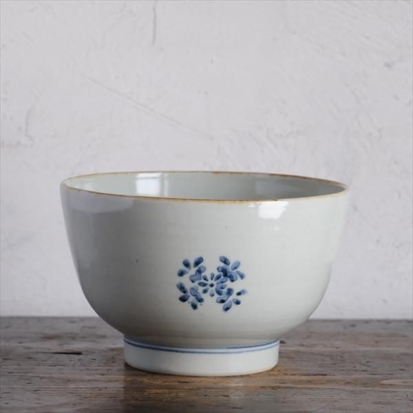 廣政毅 作 渕鉄花文丼 径約16.8cm 高さ約10.5cm 8分目で約800cc ¥7,700 京都の人気作家、藤塚光男さんのところでロクロの修業をして独立しました。 お花の印判(ハンコ)が愛らしいですね。 筆では描けない雰囲気で、呉須の濃淡も趣があります。 たっぷりサイズの麺鉢です。