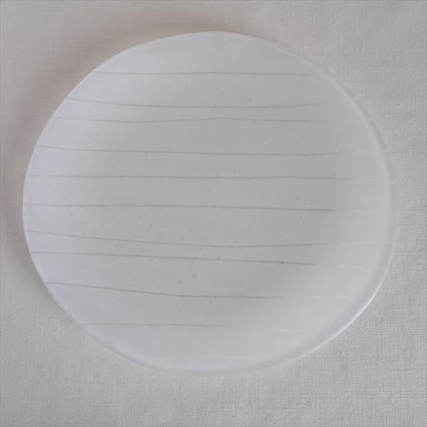凹型に石膏型を作り、そこに白を塗り、粉状ガラスを敷き詰めて窯で溶解して成形しました。
