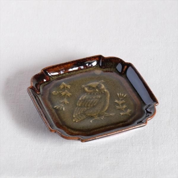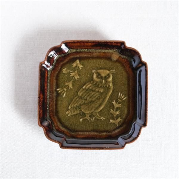 TOP > 林健二 陶磁器 > 陽刻飴釉ミミズク皿