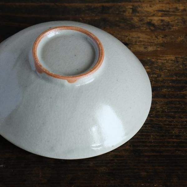 林健二 作 青白磁小鉢 鳥 径約14.5cm 高さ約5cm ¥2,750 ひそやかに鳥が貼花されているのが、可愛すぎです。 (貼花・・・別に作ってはりつけている) 細かな貫入が入っている半磁器の生地です。 使いこむとその貫入に色が入って風情がでてくるのも楽しみです。 釉薬が厚くかかったところは、流れる表情もでて面白いです。 お鍋のお取鉢に良いサイズ感です。 普段は和え物などなど、塚やすい小鉢です。