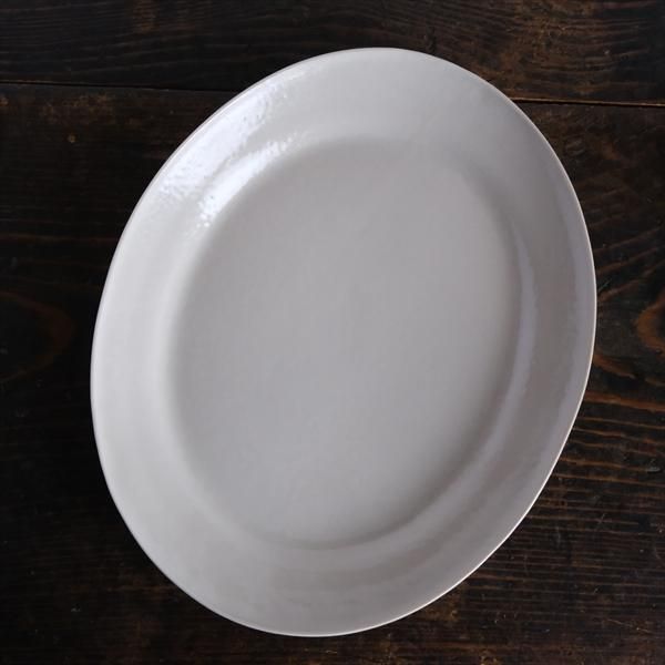 伊藤叔潔 作 オーバル 大 白 横約27.2cm 幅約22cm 高さ約2.6cm ¥4,950 <伊藤叔潔プロフィール> 1979年 栃木県生まれ 1999年 栃木県益子町に移住 窯炉に携わる 2009年 益子町に築窯 以降、各地で個展・企画展に出品 シンプルで美しい形の白磁のオーバル皿です。 やわらかみのある表情の釉薬がとても魅力的。 銘々にメインやパスタ、ワンプレートにも、盛り皿にも、いろいろにお使いください。