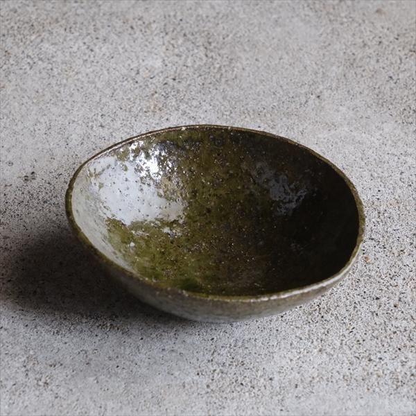 平野寅和 作 黒緑釉浅鉢 横約14cm 幅約13.3cm 高さ約5cm ¥3,080 ざっくりとした土感が風合いあります。 自ら京都・亀岡周辺の土を採取して、土作りをして成形しました。 緑がかった奥行きのある黒がとても美しいです。 電気窯で、何度も釉薬を塗っては焼成、を繰り返してこの色を出しました。 お料理が映える器です。