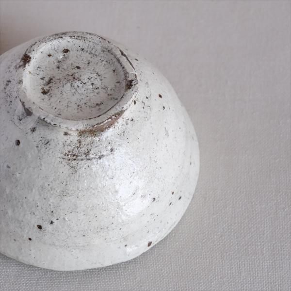 平野寅和 作 粉引飯碗 径約12cm 高さ約6.5cm ¥3,300 ざっくりとした土感が風合いあります。 自ら京都・亀岡周辺の土を採取して、土作りをして成形しました。 あたたかみのある粉引の肌合いが味わいあります。 手取りの良い飯碗です。 美味しい新米を食べてくださいね。