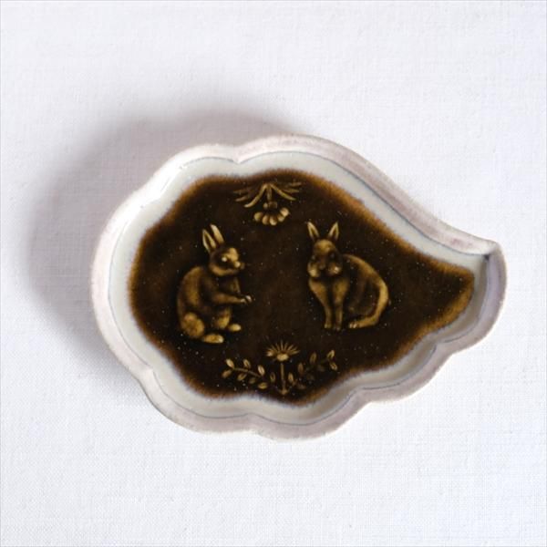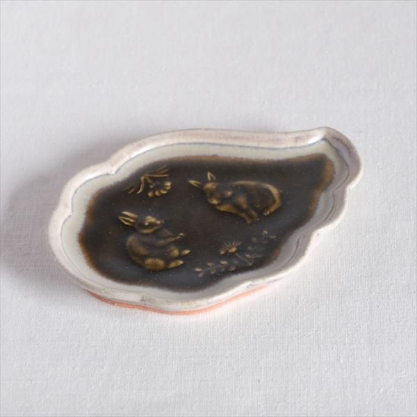 TOP > 林健二 陶磁器 > 陽刻白黒ウサギ皿