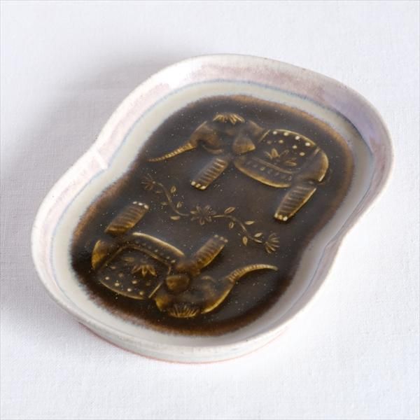TOP > 林健二 陶磁器 > 陽刻白黒ゾウ皿