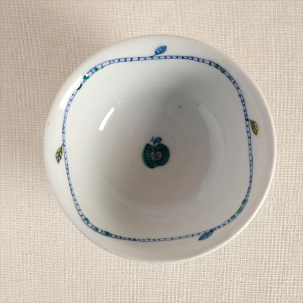 色絵は普通、細い黒線で縁取りするのですが、こちらは呉須で縁取りしている「豆彩」になります。